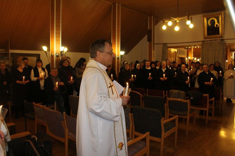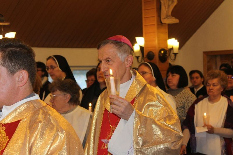 A találkozó szentmisével kezdődött. A jelenlevők egy-egy égő gyertyát tartottak kezükben, melyeket Majnek Antal munkácsi megyéspüspök áldott meg és hintett meg szentelt vízzel; ezután vonultak be a kápolnába.