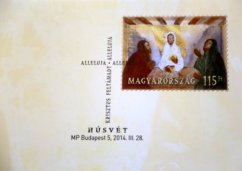 A 115 Ft névértékű általános forgalmi bélyeg a kenyértörésben felismert Megváltót és a két emmauszi tanítványt ábrázolja. A bélyeg kivitelezése ofszet- és arany fólianyomtatás kombinációjával a Pénzjegynyomdában készült Hajdú József művészfotója és Domé Eszter grafikusművész tervei alapján. A hozzá tartozó alkalmi borítékot Udvardi Erzsébet: Tamás apostol találkozása a föltámadt Krisztussal (Szent Kereszt templom, Fertőd) című festménye díszíti, és a „Boldogok, akik nem látnak engem, mégis hisznek.” (Jn 20, 29) bibliai idézet olvasható rajta.