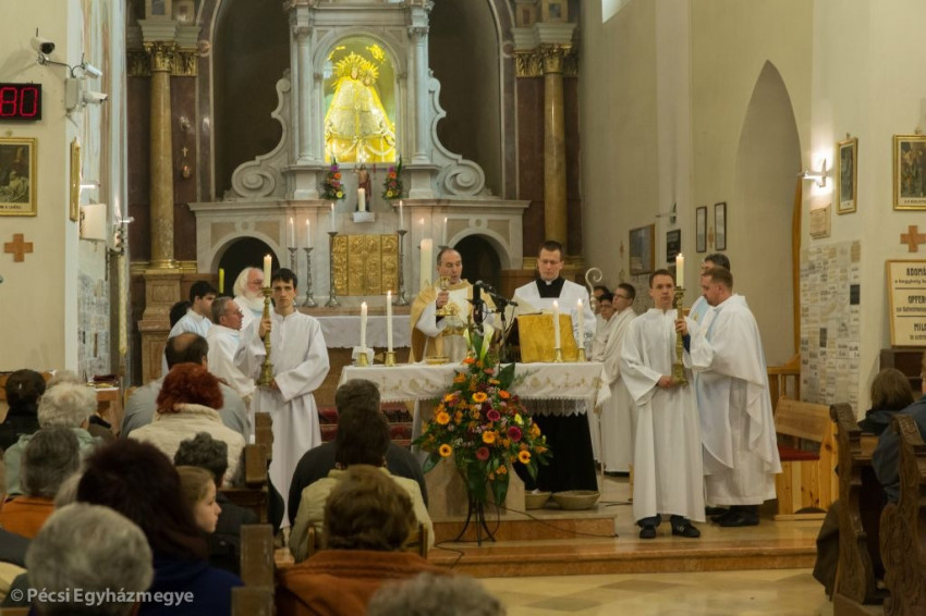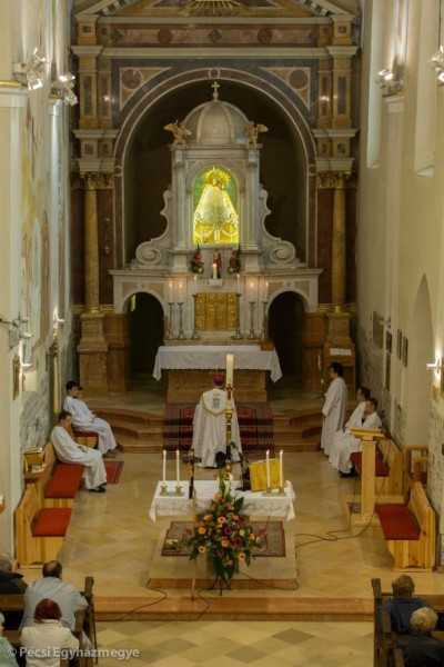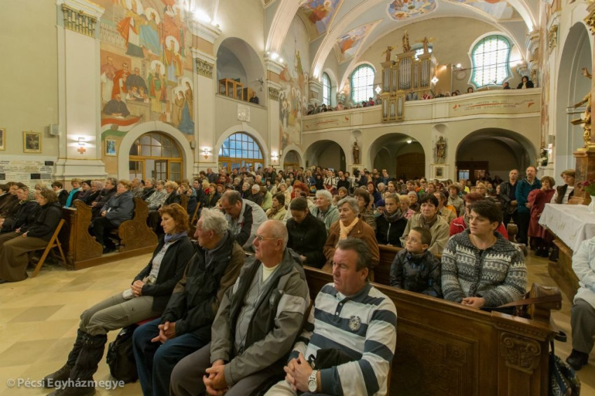 Máriagyűdön 14 órától Iváncsits Tamás vezetésével zenés áhítatot tartottak, majd a zsúfolásig megtelt bazilikában Udvardy György megyéspüspök litániát vezetett. A 15 órakor kezdődött szentmisét az egyházmegye szándékára ajánlották fel.