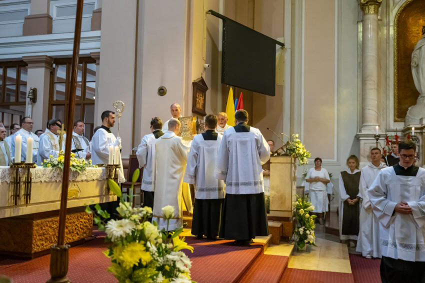 A szentmise záróáldása előtt az újmisés atyák is áldásban részesítették főpásztorukat.