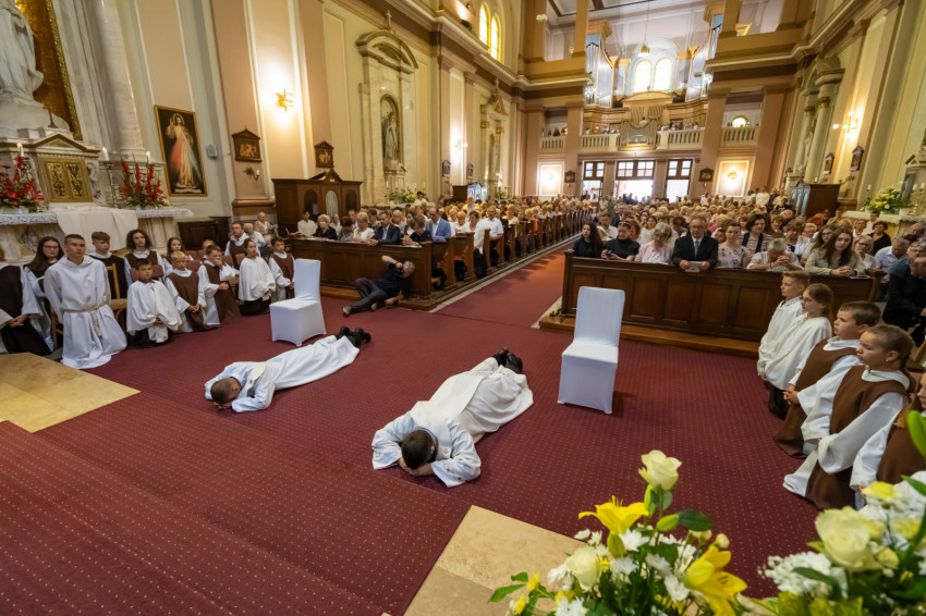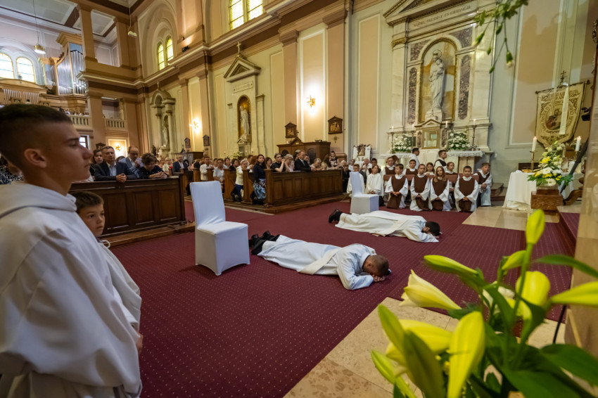 A szentbeszéd után az áldozópapjelöltek ígéretet tettek feladataik hűséges vállalására, majd a főpásztor elé járultak, és letérdelve tiszteletet és engedelmességet ígértek az érseknek és utódainak. Ezt követően a Mindenszentek litániája alatt arcra borultak, míg a többiek letérdelve imádkoztak.