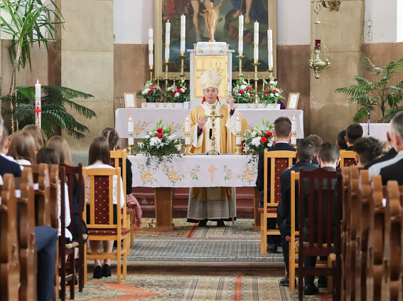 Az áldást követő szentmise keretében került sor a bérmálás szentségének kiszolgáltatására 41 bérmálkozó részére. Udvardy György a bérmálkozókhoz szólva kiemelte: „Jó rátok nézni, reménykedve tekintünk rátok! Törekedjetek arra, hogy Isten Fiát, Jézus Krisztust egyre jobban megismerjétek. Nincs más esélye az embernek, nincs más út, igazság, erkölcs, méltóság, csak az, amit Jézus Krisztustól tanultunk.”