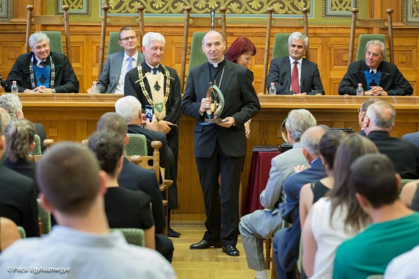 Az ünnepség kitüntetések átadásával folytatódott. A Pécsi Tudományegyetem szenátusa Pro Universitate Quinqueecclesiensi kitüntetést adományozott Udvardy György pécsi megyéspüspöknek, aki jelentős mértékben elősegíti az egyetem jó hírnevének öregbítését, hazai és külföldi elismertségét; az egyetem részére jelentős szolgálatot tett, és kiemelkedő szerepet töltött be az egyetem társadalmi kapcsolatainak fejlesztésében.