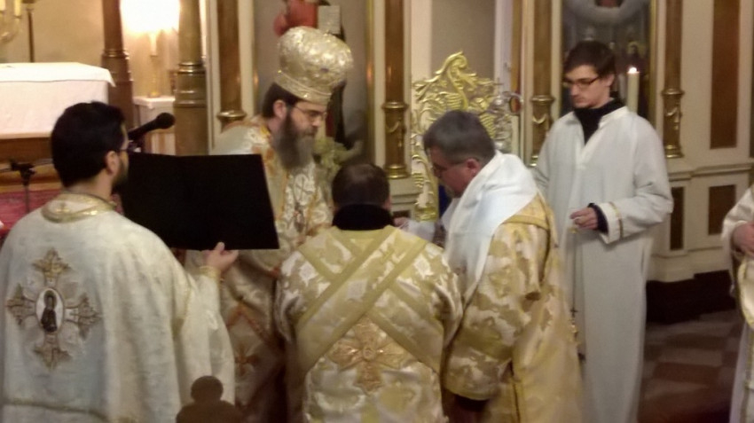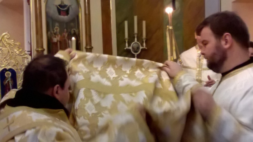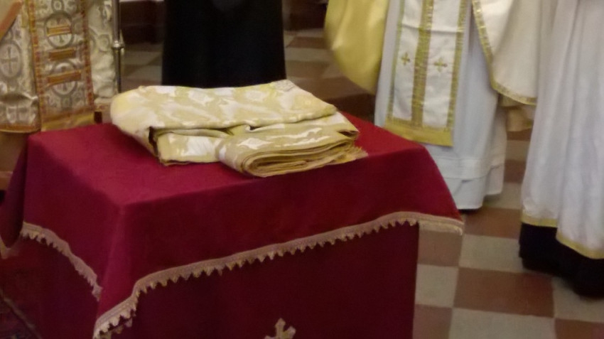 A szertartás a sztichárion (földig érő, ujjakkal ellátott ingszerű öltözék) és orárion (hosszú, keskeny, stólaszerű, többnyire keresztekkel ékesített, vállon átvetve viselt öltözet) megáldásával kezdődött. Ezek a ruhák a szolgálatban való készséget jelentik, jelképei annak, hogy viselőjük Isten kegyelmébe öltözve végzi az oltárszolgálatot.