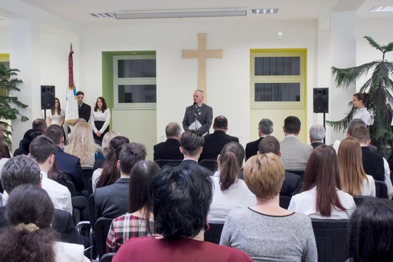 Az aula építéséről szóló képes beszámoló után Bábel Balázs megáldotta az új épületrészt.