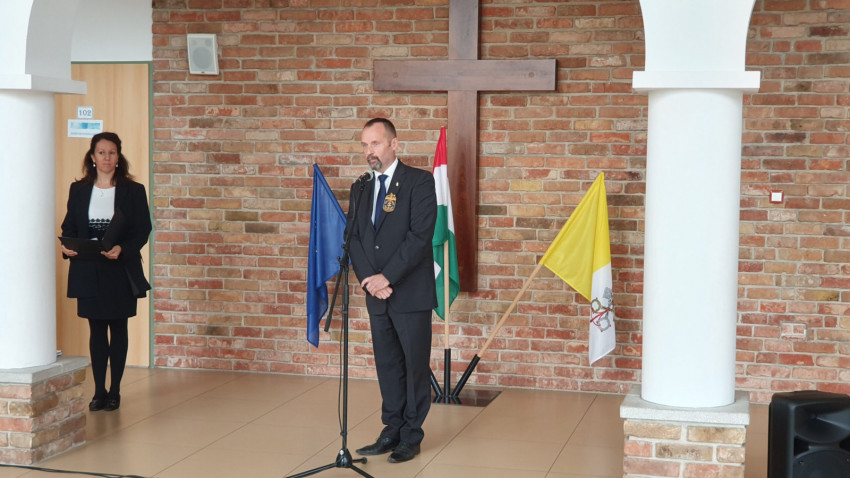 Rieder András, az iskola igazgatója beszédében köszönetét fejezete ki az érseknek, a Veszprémi Főegyházmegyének, az iskola fenntartójának az anyagi támogatásért, a tervezőknek, a kivitelezőknek, a szülőknek pedig áldozatos munkájukért.