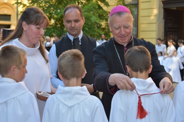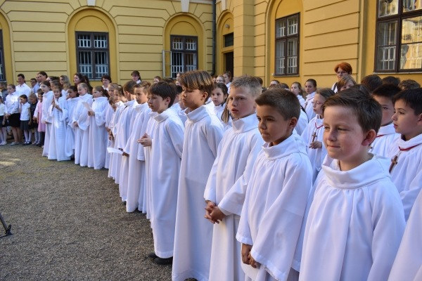 Varga László székesegyházi karnagy, a Karolina Katolikus Általános Iskola Székesegyházi Kórusiskola és Alapfokú Művészeti Iskola művészeti vezetője, a kántorképző igazgatója arra mutatott rá, hogy a beöltözéssel kapott ruhának nem csupán esztétikai értéke van. A szülőkkel összefogva a gyermekeket arra tanítják, hogy a fehér ruhával Jézus ruháját öltik magukra, a kereszttel pedig Jézus keresztjét veszik szívükre. Ez abban erősíti őket, hogy személyesen Krisztust öltsék mindig magukra, vele azonosulva pedig legyenek áldozatkészek a szeretetben.