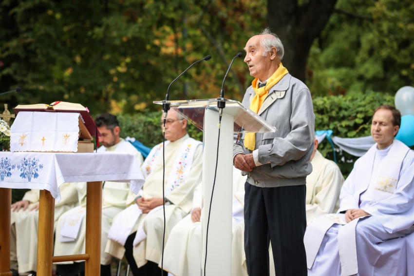 Koltay Endre, aki házas emberként költözött másfél éve az otthonba, életéről vallott az ünneplők előtt. Túrmezei Erzsébet A legnagyobb művészet című verse nyomán érzékeltette ezen életszakasz nehézségét: „Nem könnyű idősnek lenni, tanulni kell.”