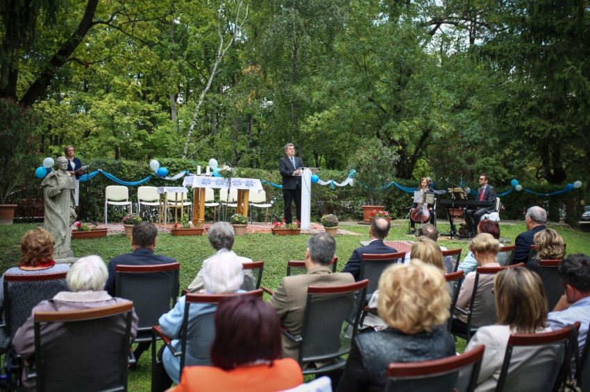 A XXIII. János Otthon ünnepi díszbe öltöztetett Szent József utcai épületrészének kertjébe, a máriaremetei Kisboldogasszony-bazilika tőszomszédságába hívták hagyományos „házünnepre” a szeretetszolgálat munkatársait, a lakókat és hozzátartozóikat. Az udvaron felállított szabadtéri oltár köré gyűlt össze a közösség a Kisboldogasszony napjához kapcsolódó ünnepen a kegyhely ligetes kertje faóriásainak nyugalmat sugárzó ölelésében. Idén különleges tartalommal gazdagodott az ünnep: átadták és megáldották az intézmény kertjében álló felújított egykori paplakot, mely eredetileg a szervita nővérek óvodája volt. A „Befogad-lak”-nak elnevezett épület átalakításának célja, hogy a demenciával élő idősek nappali gondozójának adjon helyet. A rászorulók számára otthonokat fenntartó Katolikus Szeretetszolgálat szakmai munkájának egyik fő hangsúlya az Alzheimer-kórban és időskori demenciában szenvedők ellátása.