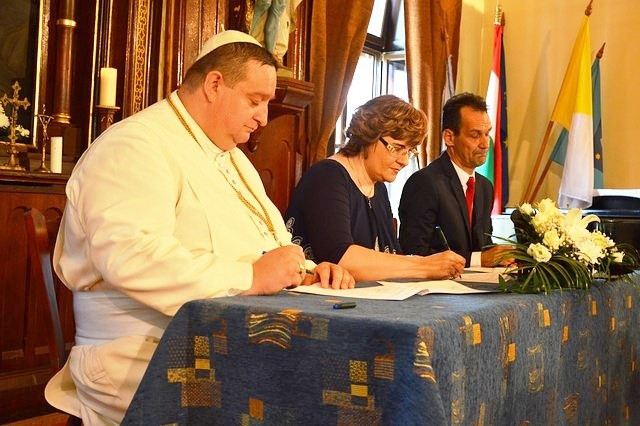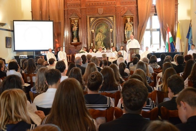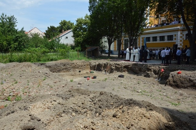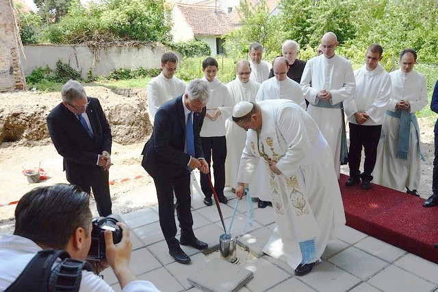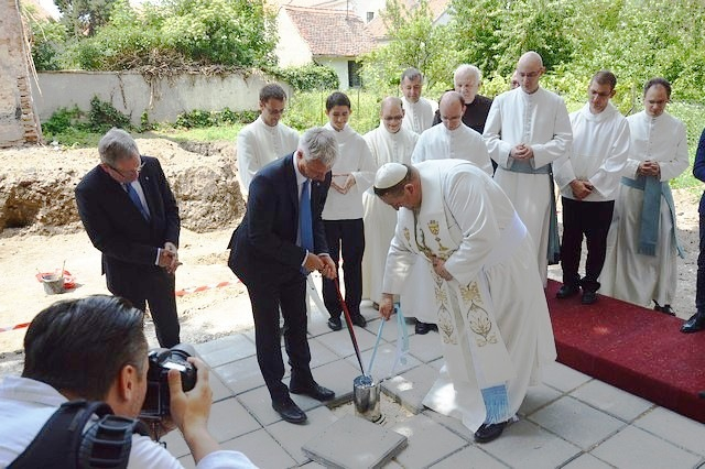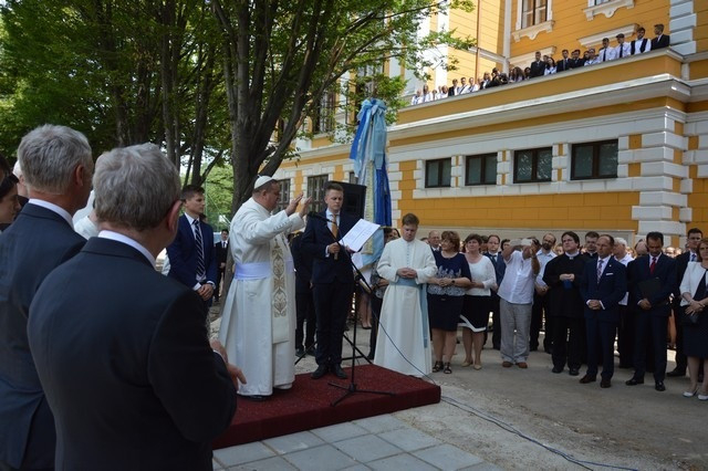 Az alapkövet Fazakas Z. Márton OPraem csornai apát és Soltész Miklós egyházi, nemzetiségi és civil társadalmi kapcsolatokért felelős államtitkár helyezték el az iskola diákjai, pedagógusai, dolgozói és a meghívott vendégek jelenlétében.