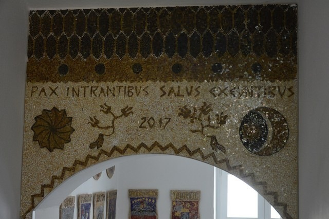 Fazakas Márton egy új mozaikot is megáldott az épületben: az alkotás az egyik lépcsőforduló falát díszíti.