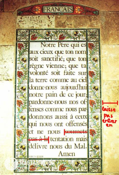 A szóban forgó fordítás, amelyet a mai napig használnak a szentmiséken, úgy hangzik ugyanis, hogy „ne vígy minket kísértésbe”, ami ellenkezik azzal a változattal, amelyet a franciák a mindenki által elfogadott módon használtak, és amely úgy hangzott, hogy „ne engedjen – mármint isteni Fölsége – elbuknunk a kísértésben”. Istent ugyanis a francia nyelvben hagyományosan magázódva szólították meg a II. vatikáni zsinatig.