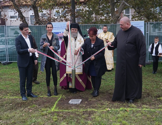 Orosz Atanáz püspök az alapkő mellett annak helyét is megszentelte. A megszentelt helyre Koncz Zsófia, Bialkó Mária, Orosz Atanáz, Kiss Attila és Csejoszki Szabolcs együtt helyezték el előbb az időkapszulát, majd az építkezés kezdetét jelző alapkövet.