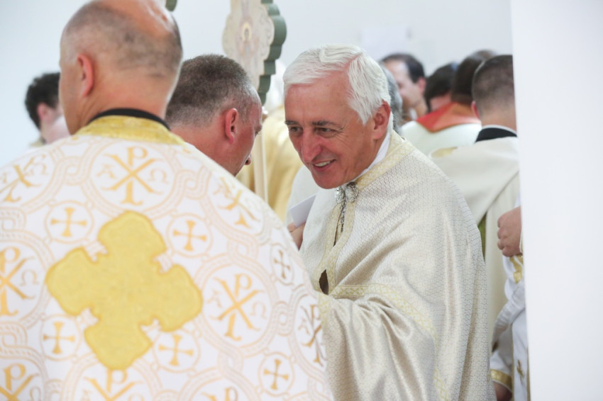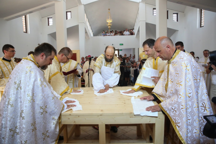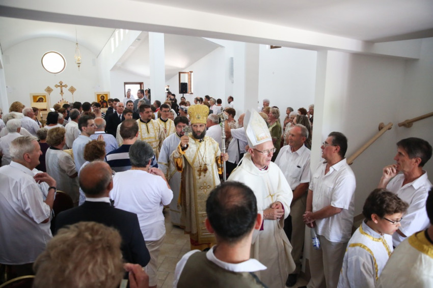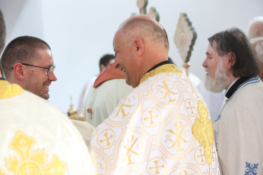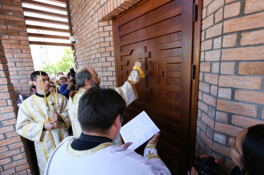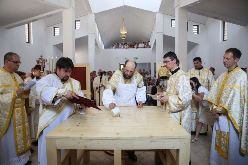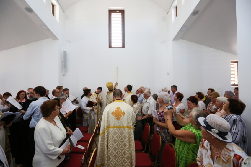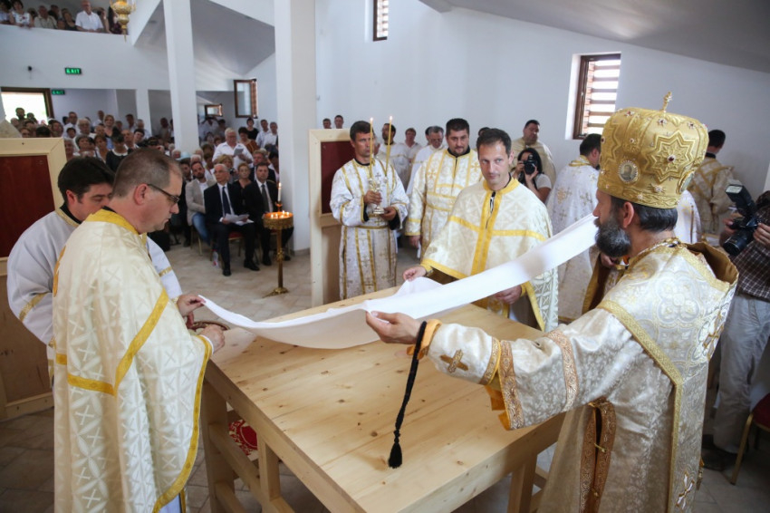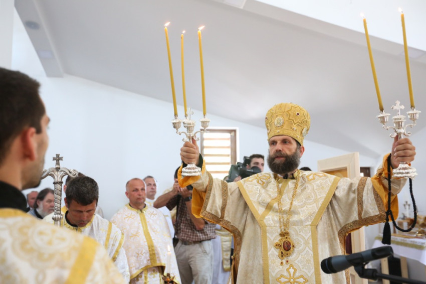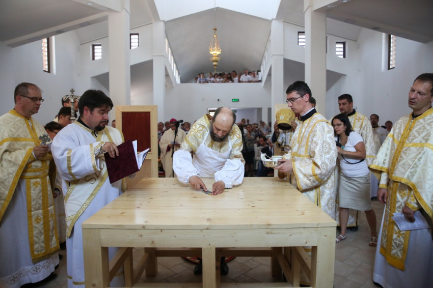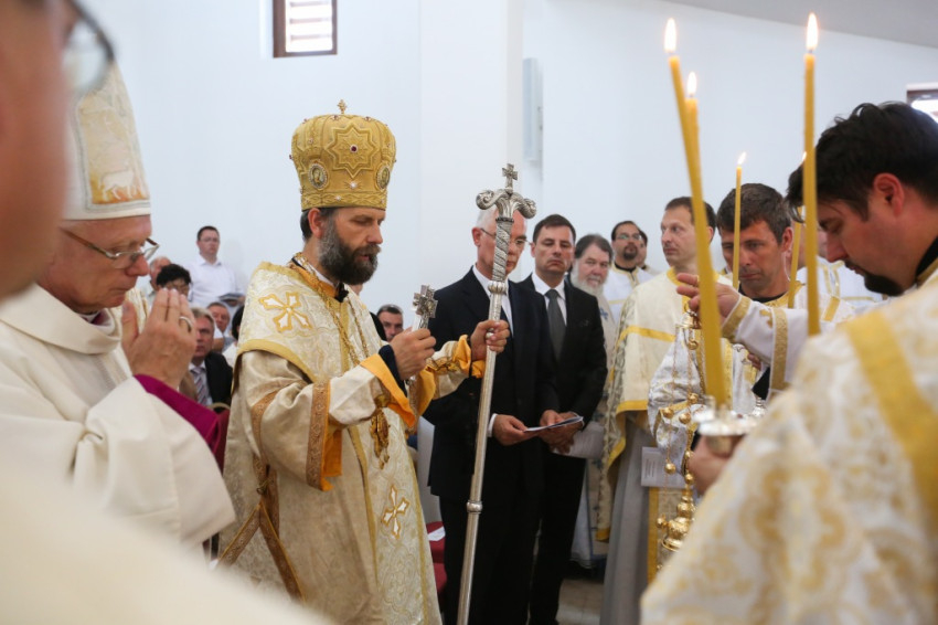 A metropolita prédikációjában a templom égi és földi mivoltáról elmélkedett. Felidézte kispapkori álmát, amelyben egy mennyből alászálló templomot látott, majd hangsúlyozta, hogy tudja, mennyi ember munkája, adománya, áldozathozatala tette lehetővé ennek a templomnak a megépítését, vagyis hogy nem a mennyből szállt alá. És mégis: ahhoz, hogy ne csak egy szép ház legyen, hogy szent hellyé váljon, isteni közreműködésre, a Szentlélek átalakító erejére van szükség. A Szentlélek ma leszáll erre az épületre és itt is marad: működni fog az emberi szívekben. A közösség élete nélkül a püspöki szentelés sem érne semmit. Nem lenne helyes, ha ezzel a látványos sikerrel csupán dicsekedni akarna a görögkatolikus egyház. Az igazi siker az lesz, ha ebben a templomban sokan otthonra lelnek az Isten közösségében. A templomépítés befejeződött, az egyház-, azaz közösségépítés folytatódik.