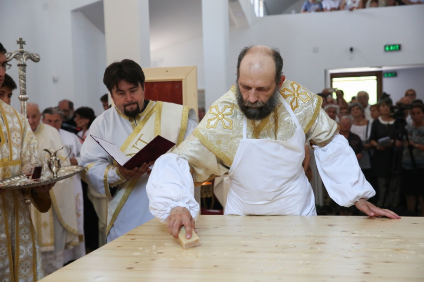 A közösség nagy körültekintéssel készült fel a kivételesen forró és fülledt, vakítóan napsütéses délelőttön megkezdődött alkalomra. A telek hátsó részén három sátrat is felállítottak: az egyikből hűtött vizet és üdítőitalokat osztottak, a másik kettő a nap elől menekülők és az idősek enyhülését szolgálta. Az étkezősátorban kivetítőt is felállítottak, így aki tartott a templomi tömegtől, beszorítottságtól, innét követhette figyelemmel a szertartást. Olyan sokakat vonzott az esemény, hogy sátrak és a templom egyaránt tele volt.