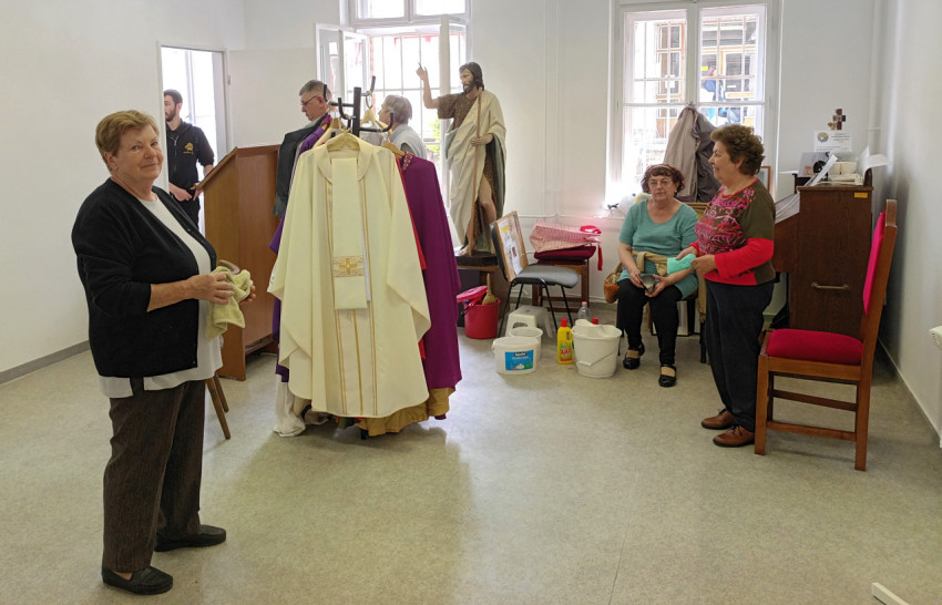 Az új sekrestye bútorai már a helyükre kerültek, az oltárt még átalakítják.