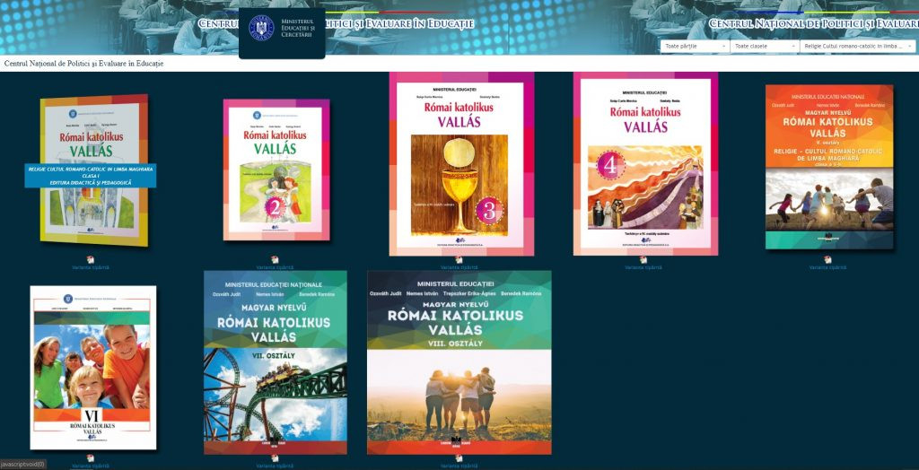 Az új 3. és 4. osztályos hittankönyv pdf-változata, valamint a 8. osztályos hittankönyv pdf- és digitális változata elérhető a romániai oktatási minisztérium honlapján.