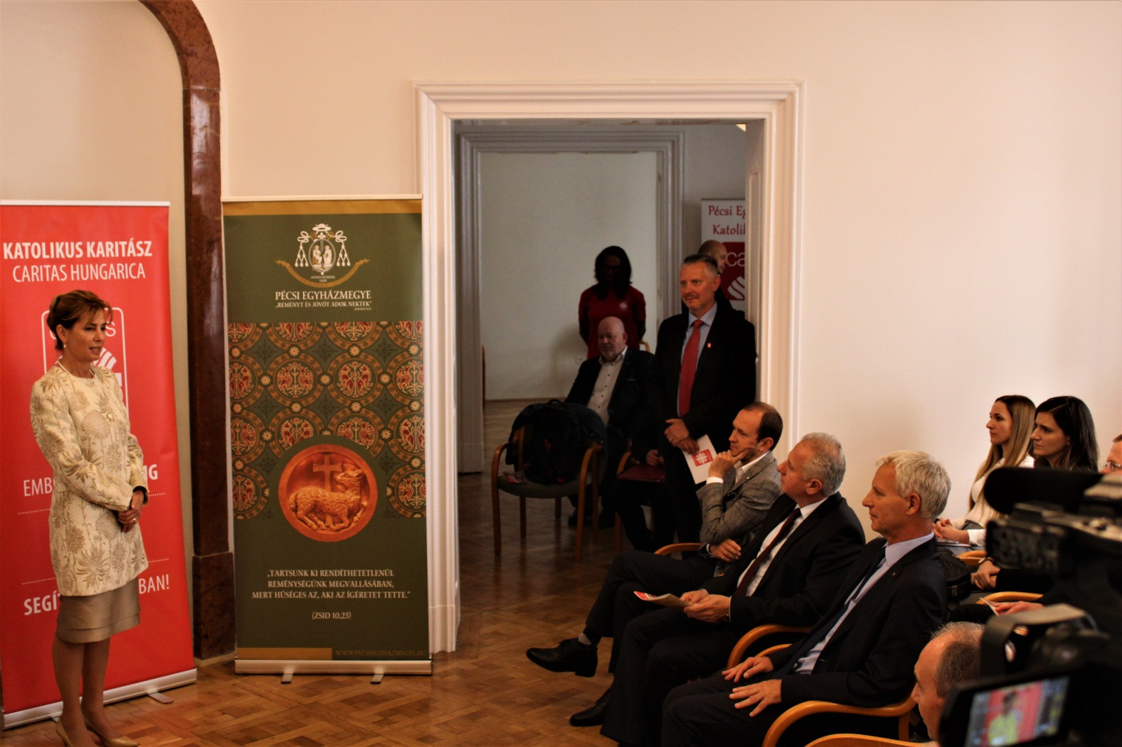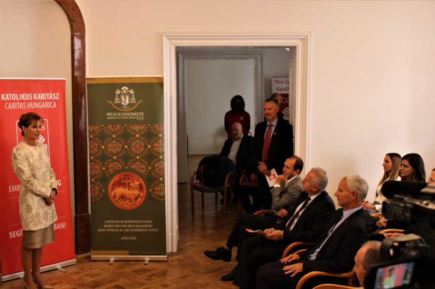 A központ megnyitóján részt vett Herczegh Anita, a köztársasági elnök felesége, aki köszöntőjében Péter apostolra, a Pécsi Egyházmegye védőszentjére emlékeztetett, majd a Szeretethimnuszt idézte, arra figyelmeztetve, hogy ha a központ nem telik meg szeretettel, a munka is hiábavaló lesz.
