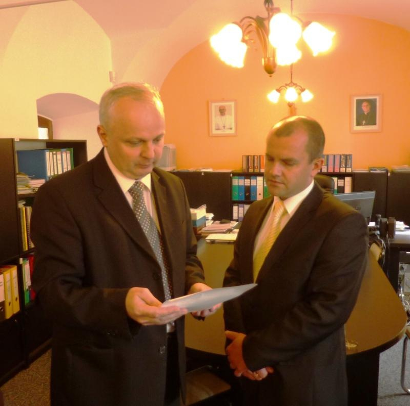 A kinevezési okmányt Miroslav Jacko, az érsekség iskolai hivatalának igazgatója adta át Gábor Bertalan esperes, plébános jelenlétében, aki elsőként gratulált a kinevezett igazgatónak. Ezt követően mindhárman a kassai dómban tisztelegtek Boldog Salkaházi Sára emléke előtt, kérve az ő égi segítségét a további feladatok felismeréséhez és méltóságteljes megvalósításához.