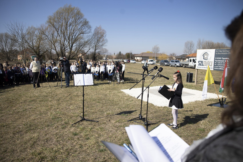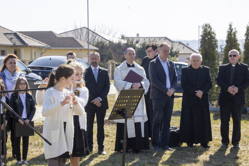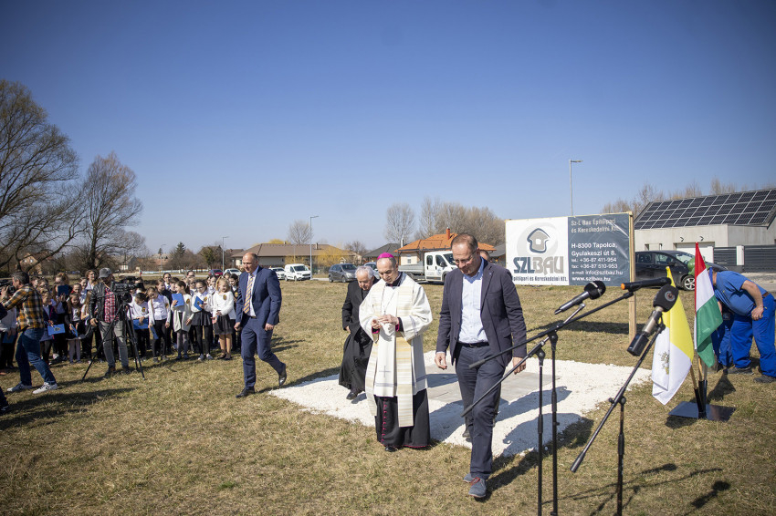 Krisztusra szeretnénk építeni, mert Krisztus az, aki fölragyogtatja a teljes embert, Krisztus az, aki biztos alap az ember életében, és Krisztus az, aki jövőt biztosít a számunkra – mondta a főpásztor. – Őseink hite a jövő reménye, ezzel tekintünk a mostani alapkőletételre, így tekintünk az épülő óvodára, hogy a jövőt tudjuk építeni– zárta gondolatait a veszprémi érsek, majd megáldotta az alapkövet.