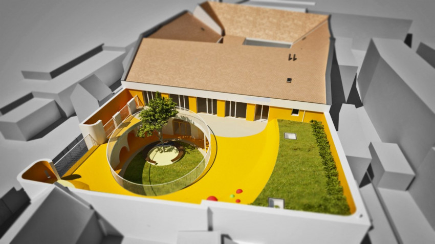Az új óvoda komplex felszerelése mellett az épület utcafronti homlokzatát is felújítják, így újra méltóságteljesen jelenhet meg környezetében.