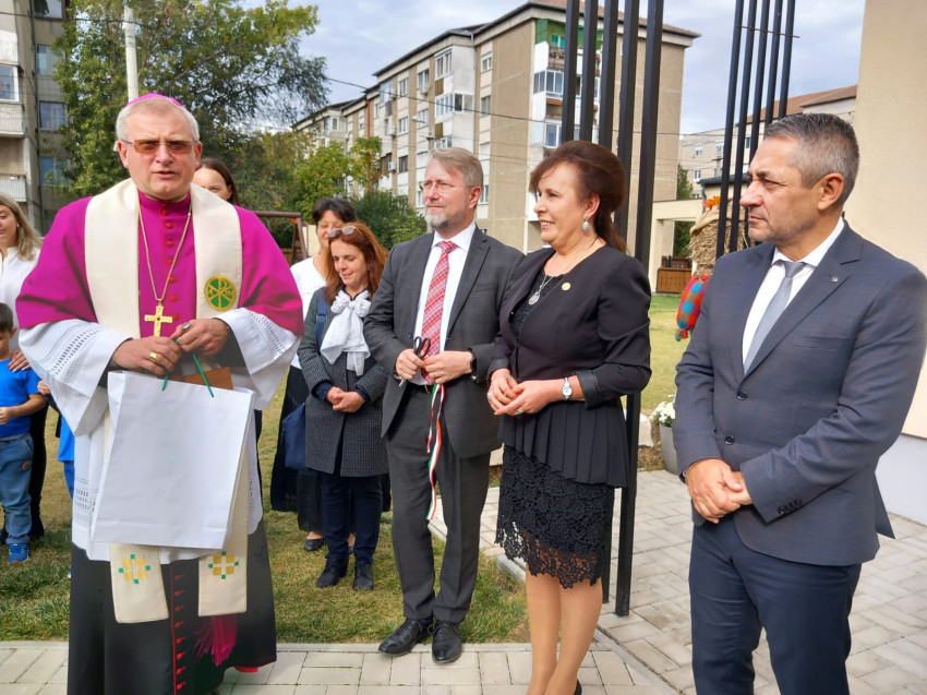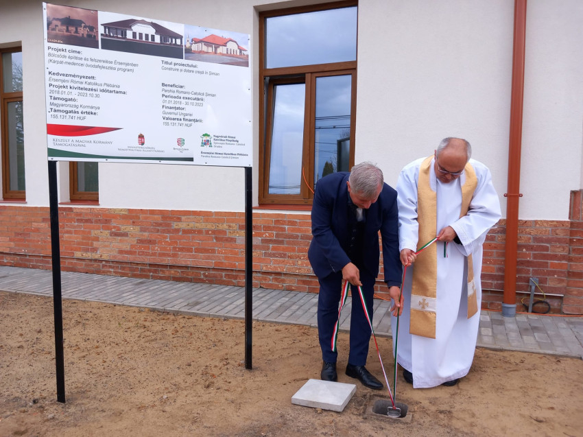 A megáldott bölcsőde időkapszuláját a plébános és Timar Sorin alpolgármester helyezte el.