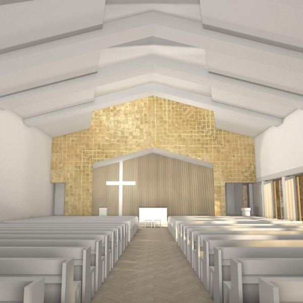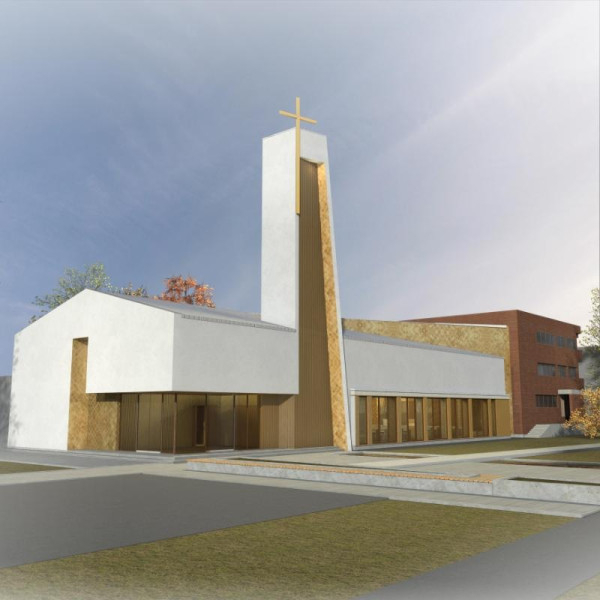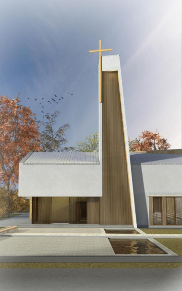 Novák Péter építész közölte, az iskola használaton kívüli kollégiumának átépítésével alakítják ki a templomot, amelynek belső tere, a résztvevők létszámához igazodva, megosztható lesz. Az utcafront felőli bejárat és a harangtorony hangsúlyozza a fehér vakolt felületű és rézlemezekkel díszített épület liturgikus funkcióját. A templom előtt pihenőteret hoznak létre szoborral és díszmedencével.