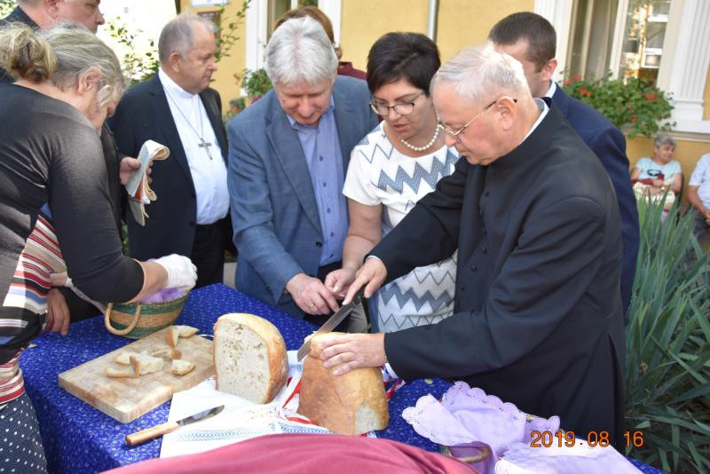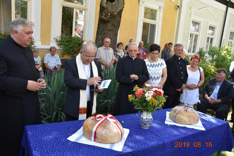 Az ünnepség második részében az épület előtti Szegények Kenyere-keresztnél helyeztek el koszorúkat; üdvözlőbeszédet mondott Finta József plébános. Ezt követően Bábel Balázs érsek megáldotta a magyar és lengyel nemzeti színű szalaggal átkötött kenyereket. A lengyel vendégek a kecskeméti városvezetéssel együtt szelték fel és osztották szét a vekniket a jelenlévők között.