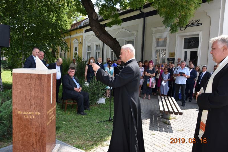 Elsőként átadták és megáldották a Wojtyła-napórát, melyet az épület előtti téren állítottak fel alig egy héttel korábban. Szemereyné Pataki Klaudia polgármester és Zdzisław Sochacki kanonok beszédet mondott, majd Finta József kecskeméti plébánossal együtt megáldották a sajátos időmérőt. „Rendkívül meghatott vagyok, mert eddig nem is gondoltam, hogy II. János Pál pápa szellemi hagyatéka, szeretete, irgalmassága ilyen komolyan hatott a világra” – fogalmazott Zdzisław Sochacki.