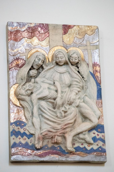 A keresztút Petrás Mária Prima Primissima és Magyar Örökség díjas keramikus és népdalénekes alkotása.