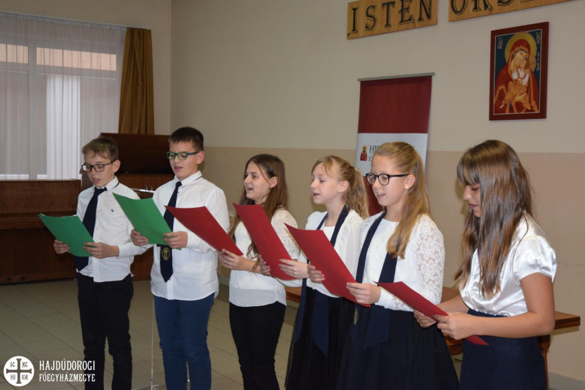 Az átadóünnepség elején Tóth Elek görögkatolikus pap, lelki igazgató mondott imát. Ezt követően az iskola tanulója, Fazekas László szatmári népdalokat énekelt, melyet Tóthné Szabó Marianna tanárnő kísért citerán.