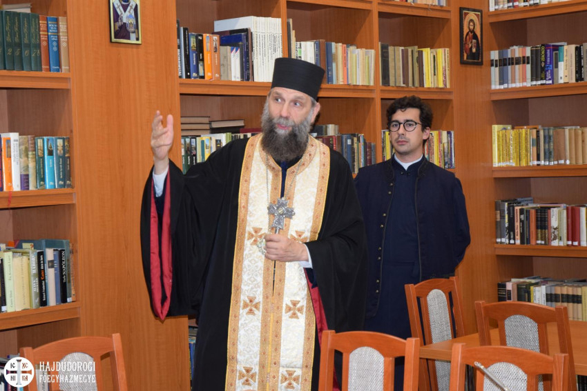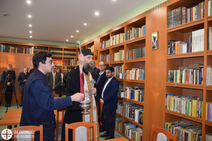 Az átadóünnepség résztvevői átvonultak az új könyvtárba, ahol Kocsis Fülöp metropolita rövid imádság után felszentelte a könyvek házát, majd így szólt a hívekhez: „A tudás nagyon nagy érték, de nem mindegy, hogy mire használja fel az ember. Sokszor láttuk már az életben azt, hogy a tudás hatalma szembefordul az emberrel, hogyha azt nem az Istentől kapja.