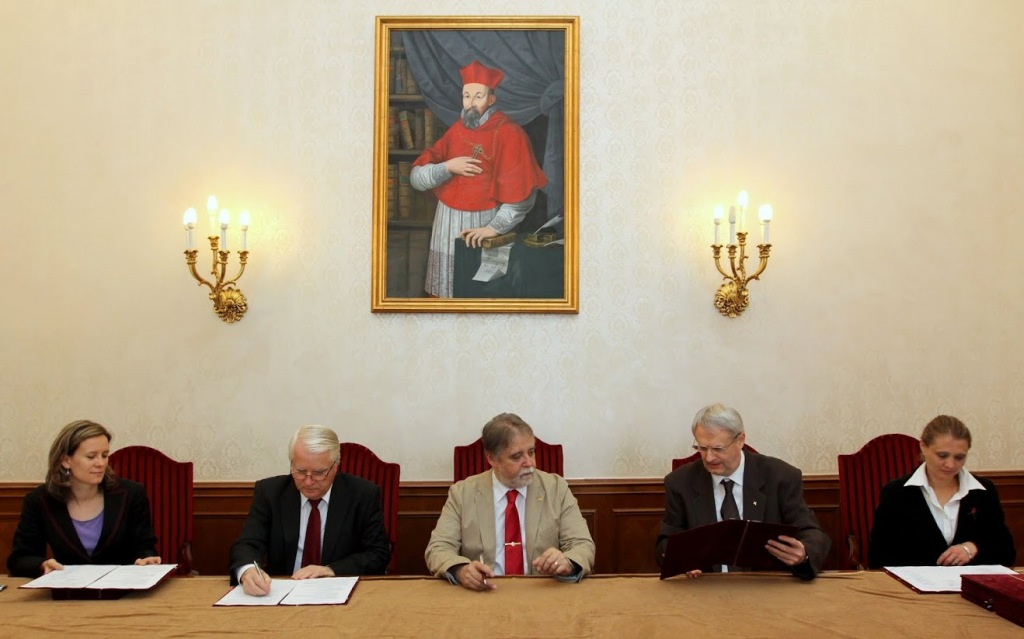 A megállapodást az ELTE Állam- és Jogtudományi Karának épületében írta alá Mezey Barna, az Eötvös Loránd Tudományegyetem rektora, Várnai Sándor Jakab, a Sapientia Szerzetesi Hittudományi Főiskola rektora és Szabó Lajos, az Evangélikus Hittudományi Egyetem rektora.