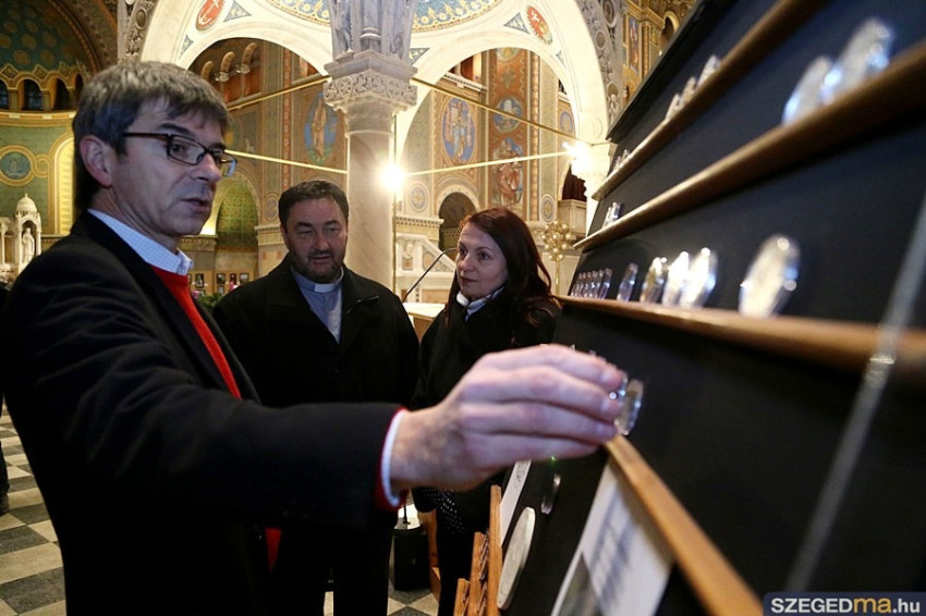 „Új arculata lett a templomnak, s fontosnak éreztük, hogy ezt megörökítsük, legyen valami olyan, ami kézzel fogható módon emlékeztet erre” – indokolta az érem megalkotását Kondé Lajos, a dóm plébánosa. Emlékeztetett, építészeti bravúr volt a hatvantonnás baldachin áthelyezése a felújítás során. „Most már elvileg jó helyen van, az építkezés során praktikus okokból helyezték a korábbi pontba. Egy 1970-es években született szakvélemény is azt javasolta, hogy a baldachin a mostani helyére kerüljön át, ez végre megvalósult” – mondta.