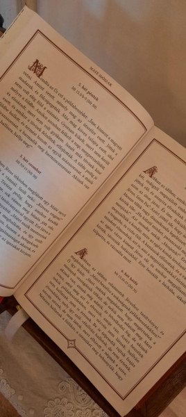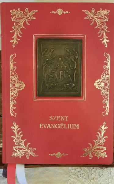 Ahogy a szervezőlelkész atya elmondta, az evangéliumoskönyvet mindig az oltár tartozékának tekintik. „Az evangélium, vagyis az örömhír az Egyház tanításában kiemelkedően fontos szerepet tölt be, és ahogyan emberi gesztusaink ezt megkívánják, amit fontosnak és értékesnek tartunk, azt a külsőségekben is igyekszünk jelezni. Ezért kezeltük mi is kiemelten, hogy minél előbb nagyon szép kötést kapjon az evangéliumoskönyvünk, ami így nemcsak az oltár dísze lehet, hanem