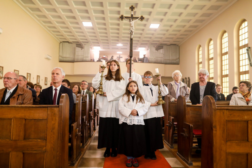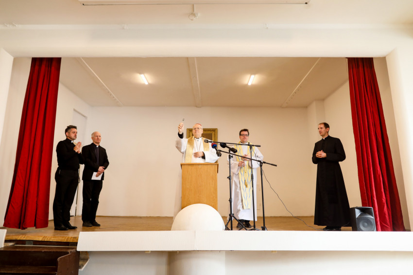 A szentmisét követően került sor a közösségi terem megáldására. A szertartást a főpásztor vezette.