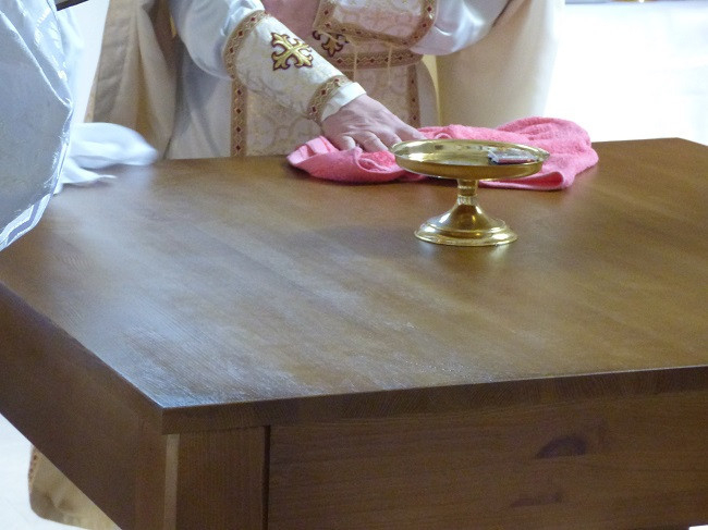 Orosz Atanáz püspök az új oltár szentelése kapcsán a szentek, vértanúk és áldozatvállaló keresztények példájából kiindulva biztatta a közösséget a mindenekfölött kitartó hitre: Mindenszentek ünnepén az Egyház a pünkösd gyümölcseit látja, szemléli és ízlelgeti. Hiszen amikor a Szentlélek leszállt az apostolokra, akkor erőt és esélyt adott nekik az örömhír továbbadására. A keresztények soraiból apostolok, vértanúk, hitvallók, szentek, aszkéták, olykor szent államférfiak vagy szent életű anyák kerültek ki, akiknek egy-egy napot szenteltünk az egyházi évben, de ma mindannyiukról megemlékezünk. Ők az ellenszélben is, minden üldöztetés ellenére is megvallják Jézus Krisztust, és Jézus nevével az ajkukon hajlandók akár meghalni is, abban a tudatban, hogy az Emberfia is megvallja majd őket mennyei Atyja, mindnyájunk Teremtője előtt – mondta a főpásztor.