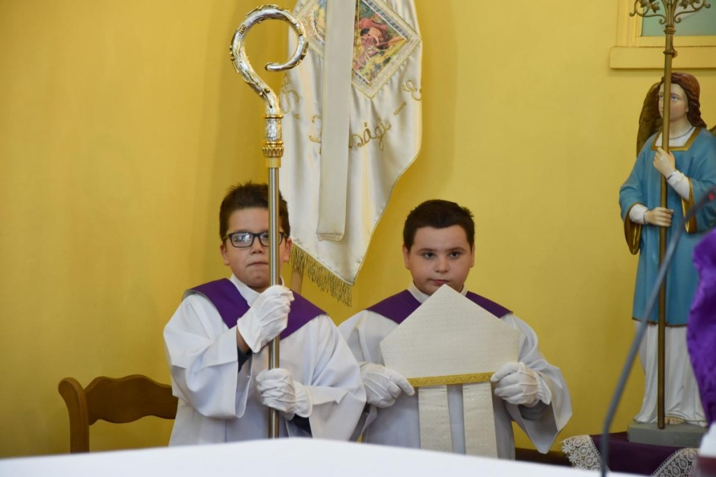 Bár a bevezető részben, amikor a plébános köszöntötte az egyházmegye elöljáróját és a vendég püspököt, sejtette a hívekkel, hogy egy rendkívüli esemény nyújtotta a különleges vasárnapi szentmise apropóját, a főpásztor jelenlétének oka csak a szentmise végén derült ki, amikor Böcskei László elmondta, hogy nem üres kézzel jött, hanem egy új oltárképet hozott, amelyet a helyi közösségnek szeretne adományozni.