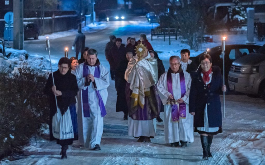 A szentmise után fáklyás körmenetben vitték az Oltáriszentséget a kolostor kápolnájába, ahol Urbán Erik megáldotta a Szent Kelemen és Adalbert-oltárt.