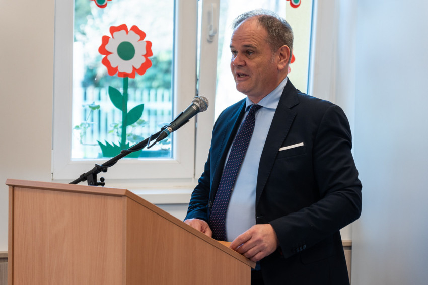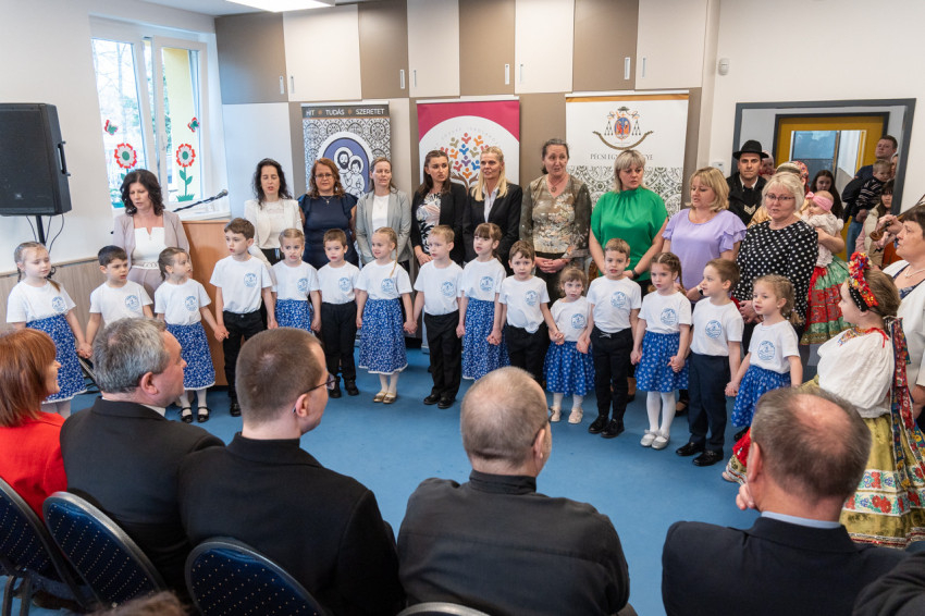 Koósz Roland, a Pécsi Egyházmegyei Hivatal oktatási irodavezetője az óvodát alapító Farkas Béla plébános gondolatait idézte fel a 34 évvel ezelőtt, írógéppel készült alapító okiratból.