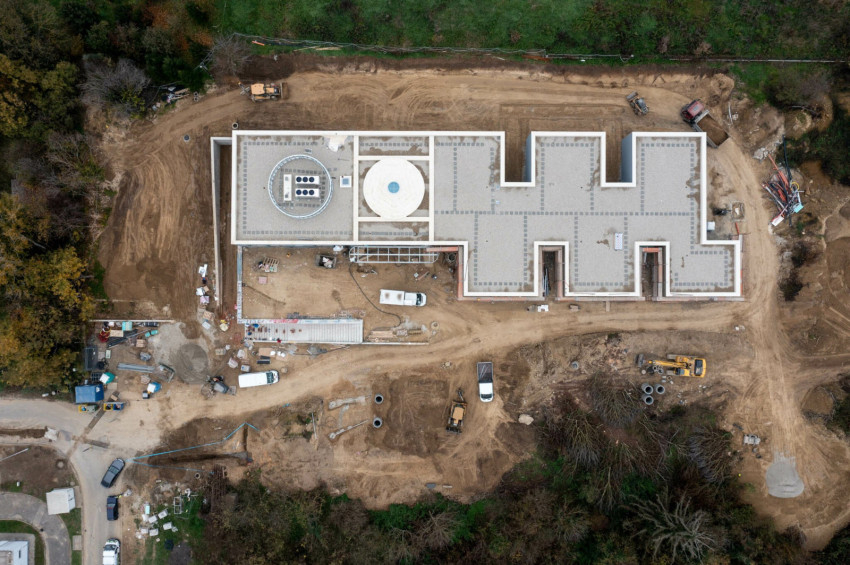 A projekt zöldmezős beruházásban Dombóvár nyugalmas, zöldövezeti részén egy 8276 négyzetméteres telken valósult meg. 2023 novemberében egy fákkal, bokrokkal dúsan benőtt, délről északi irányba lejtő munkaterületet vettek át a kivitelező cég szakemberei. Az építést megelőzően megtisztították a területet a bozóttól, és elvégezték az épület geometriai kialakításának megfelelően a tereprendezési munkákat. Utóbbi – árulta el Ihász László – mintegy 7000 köbméter föld megmozgatását jelentette. [...]