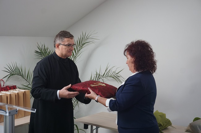 Marincsák László, a Miskolci Egyházmegye ökonómusa az épület kulcsait jelképező díszes kulcs átadásával bízta rá Bialkó Mária igazgató asszonyra a már több éve folyó, eredményes munka új helyszínen történő folytatását, és azt kívánta, hogy a mindennapok során felmerülő gondokban, feladatokban mielőbb találják meg azok kulcsát és nyitját a rájuk bízottak örömére és megelégedésére.