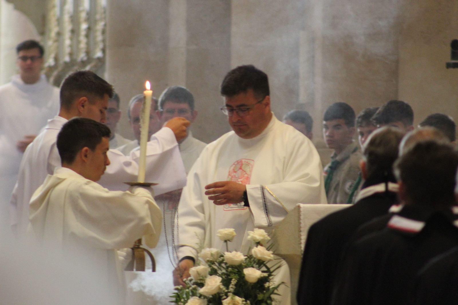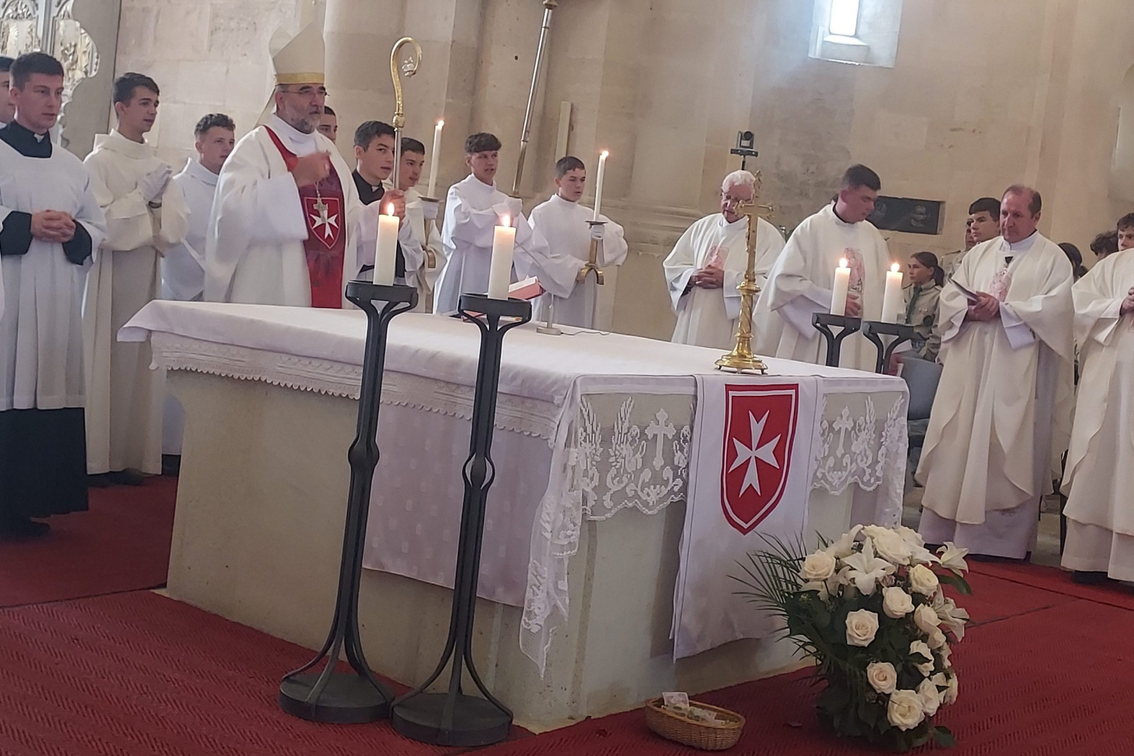 A máltai rend zászlaja alatt vonultak be az ünnepélyes szentmisére a lovagok; a koncelebráló papok – köztük Jakubinyi György nyugalmazott érsek, Marton József nagyprépost, András István szemináriumi rektor, Hurgoi János irodaigazgató, Farkas Ervin iskolaigazgató, Kovács Szabolcs érseki titkár, Papp Márton plébános, Popa Gabriel, a máltai lovagrend tagja, bukaresti érseki titkár és az asszisztencia.