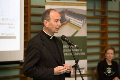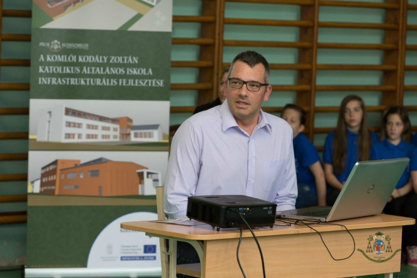 Polics József, Komló polgármestere a lehetőséget méltatta, amelynek köszönhetően a nyolcvan éves épület megújul. Mint mondta, „változás nélkül nincs előrelépés, nincs fejlődés, nincs átalakulás. Az iskola egyházi fenntartásba adása ennek az előrelépésnek az első eleme volt.” Az épületben így biztosított a 21. századi infrastruktúra, amely a színvonalhoz igazodó belső tartalmat fog nyújtani.