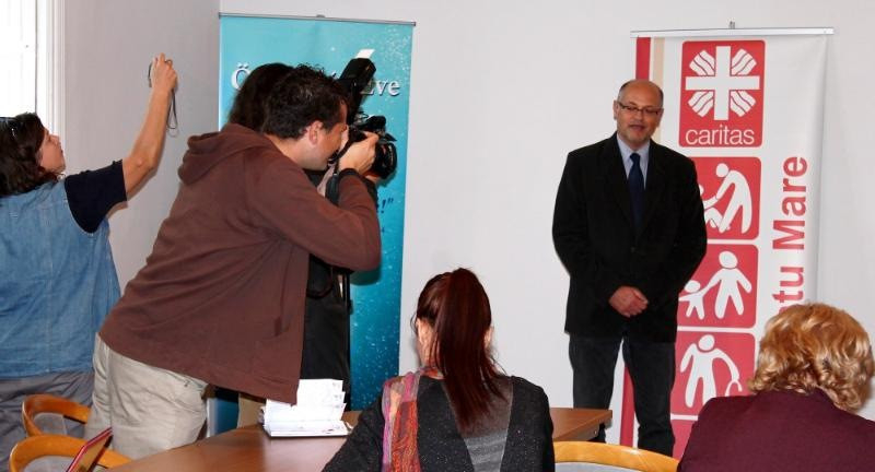 A szatmárnémeti püspöki palota konferenciatermébe tartott sajtótájékoztató elején Schönberger Jenő püspök köszöntötte a sajtó képviselőit. Kiemelte: a Caritas célkitűzései 2000 év óta nem változtak. Az egyháznak az evangélium hirdetése mellett konkrét jeleit kell adnia a szeretetnek, az irgalmasság cselekedeteivel. Mindkét cél egyformán fontos.