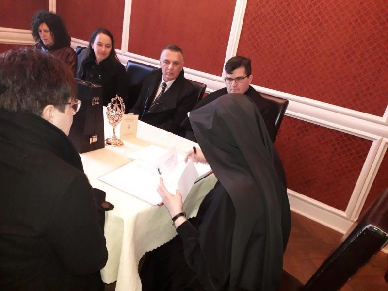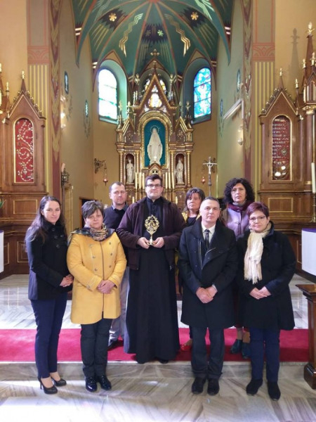 A plébánia elsődleges csontereklyét kapott különleges ereklyetartóban, melyet az Isteni Irgalmasság nővérei készítettek. Az ereklyét igazoló tanúsítvány mellé Negyela Zoltán egy levelet is átvett, melyben az Isteni Irgalmasság Apostolainak Társulata felhívja a figyelmet mindazon pasztorális lehetőségekre és teendőkre, melyet Szent Fausztina ereklyéjének tisztelete megkövetel. A zarándokcsoport az ereklye átvétele után találkozott a Krakkóban élő, magyar származású Hedvig nővérrel, aki bátorított minden jelenlévőt, hogy tudjanak kérni az „irgalmasság titkárnőjétől” és mindennap el tudják mondani: „Jézusom bízom benned.”