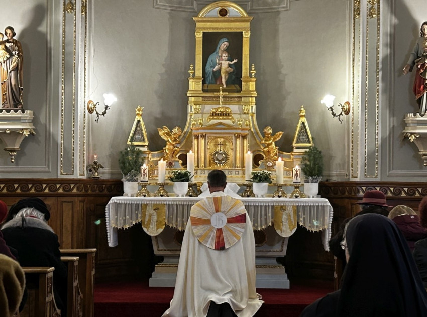 Az év első napján, Szűz Mária istenanyasága ünnepén a szatmárnémeti püspöki palota kápolnájában egész napos szentségimádást tartottak. Beosztott csoportok váltották egymást, de sokan csatlakoztak egyénileg is az imádsághoz. Az Oltáriszentségben köztünk maradt Üdvözítő a reményünk, hogy az új esztendő zarándokútján elkísér bennünket.