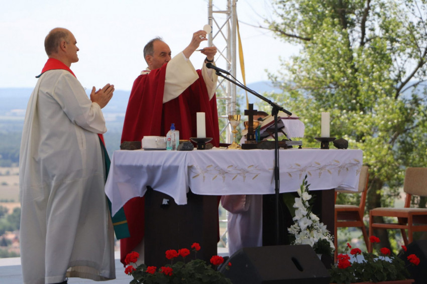 A körmenet Udvardy György érsek vezetésével indult el, majd a környező utcákon áthaladva a Szent Margit úton érkezett vissza a kápolnához, ahol a főpásztor az Oltáriszentséggel adta a szentmise záróáldását.