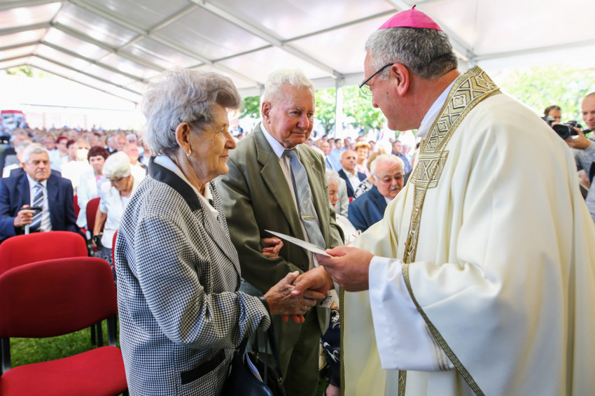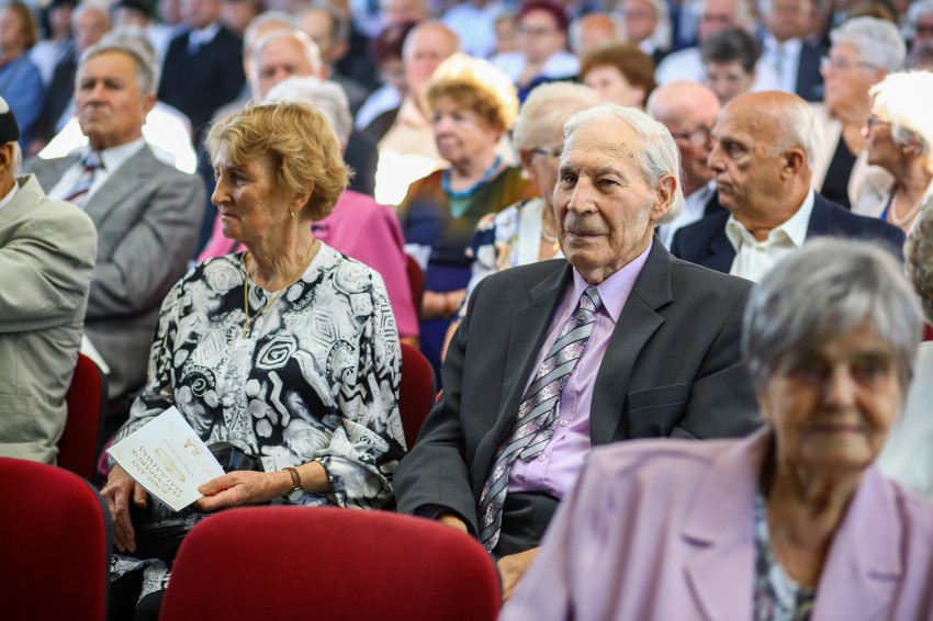 A Veres András megyéspüspök kezdeményezésére hat évvel ezelőtt elindult, a házassági jubileumukat ünneplő párok szentmiséje igazi tanúságtétel. A legidősebb pár 70 együtt töltött évért ad hálát, és nagy számban vannak jelen 65., 60., 55., 50. évfordulót ünneplők.