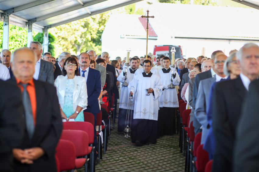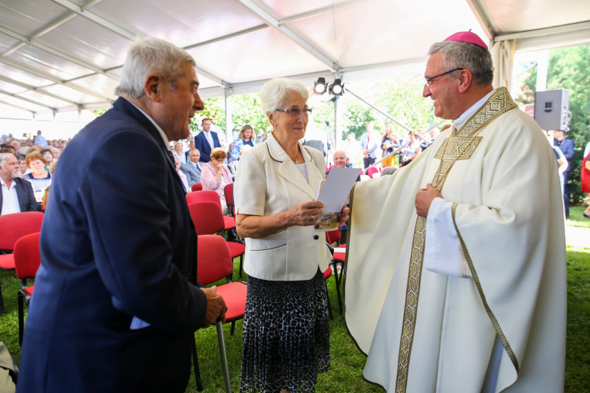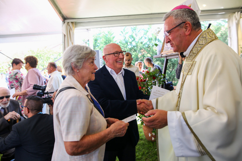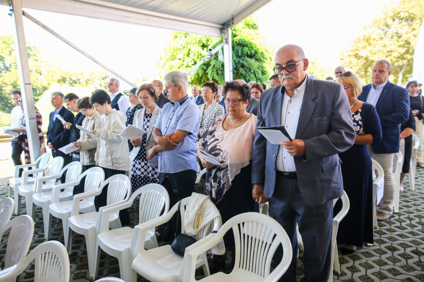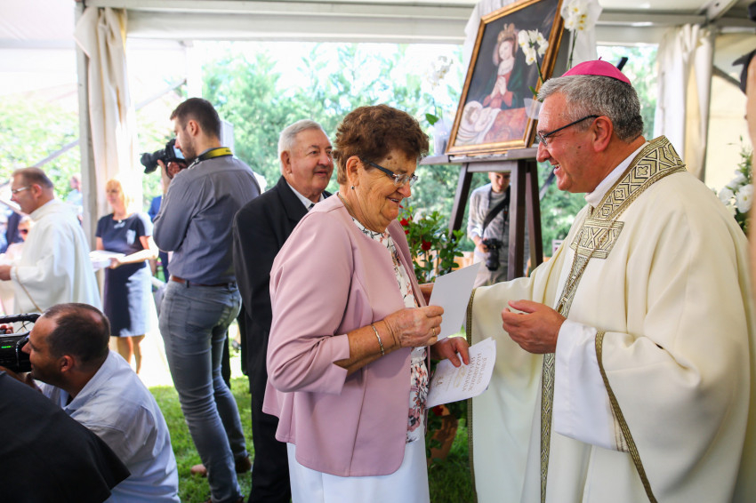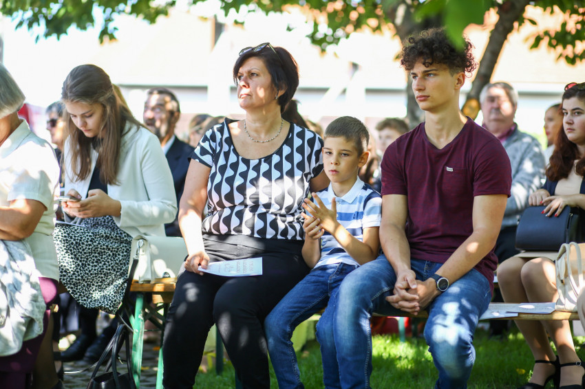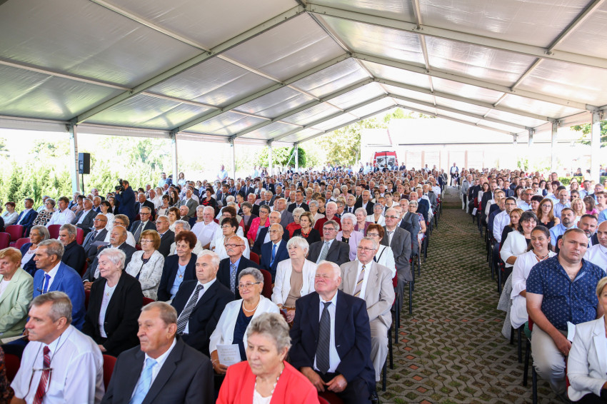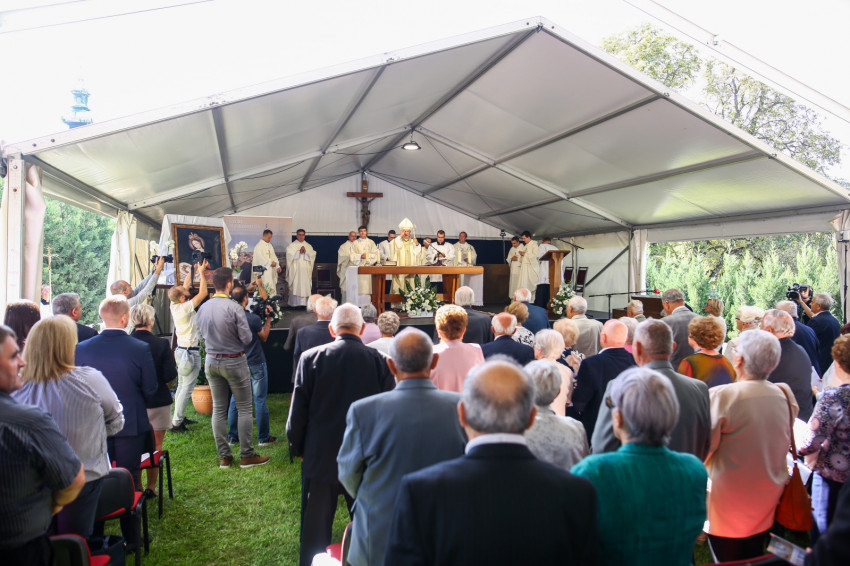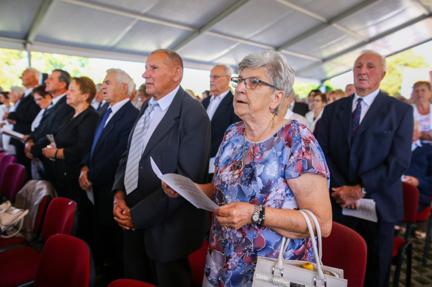740 ember ül a győri Püspökvár kertjében felállított sátor alatt. 370 házaspár, akik az 5., 10., 15., vagy éppen 70. évfordulójukat ünneplik. A sátor körül elhelyezett padokon hozzátartozóik, nagyszülők, gyerekek, unokák népes serege. Ünneplőben minden – a kék égen ragyog a nap, az utóbbi napok esőzéseinek köszönhetően friss zöldben virul az igényesen gondozott, rendhagyó kert a gyümölcsfákkal, zöldségültetvénnyel.